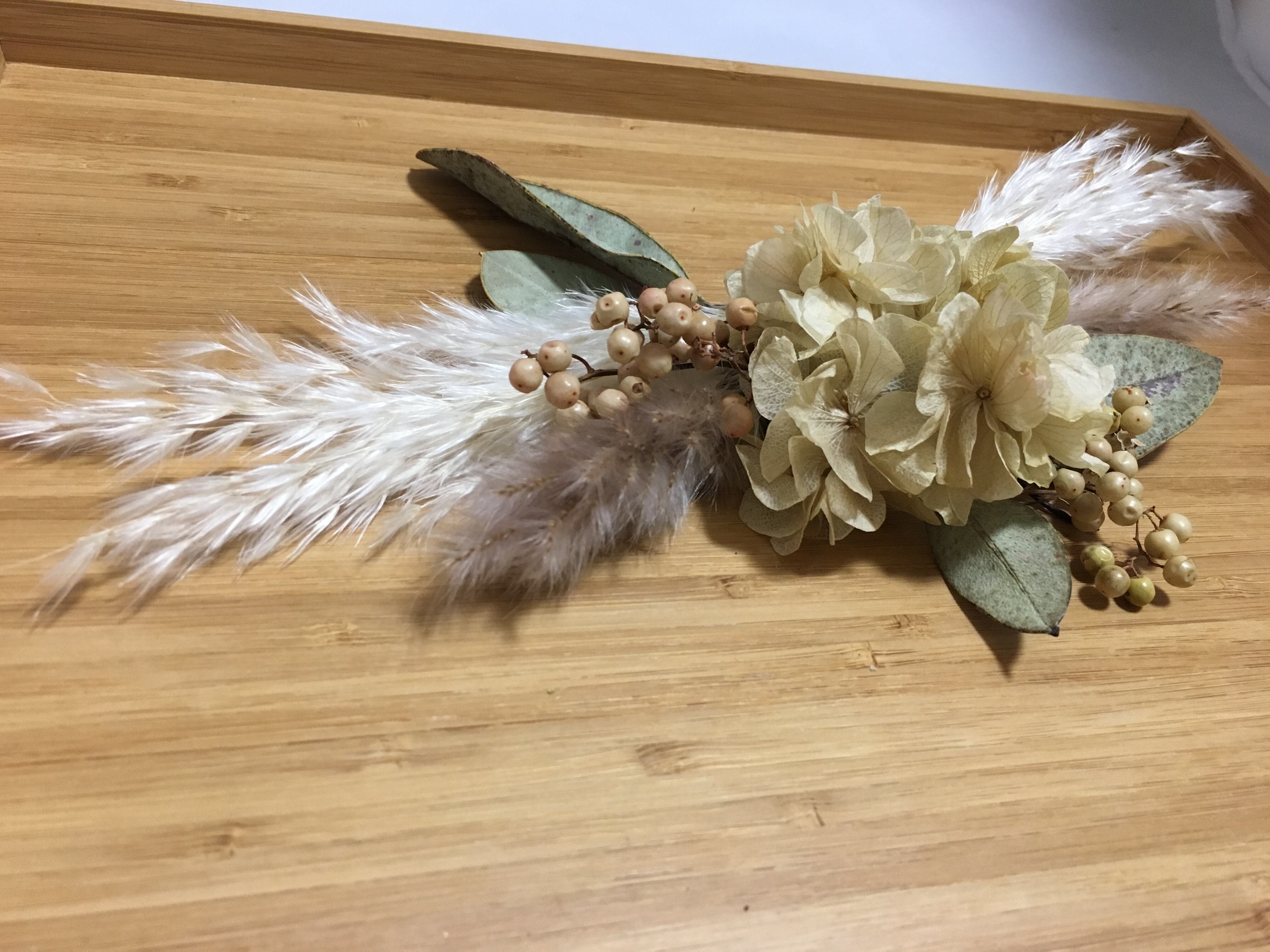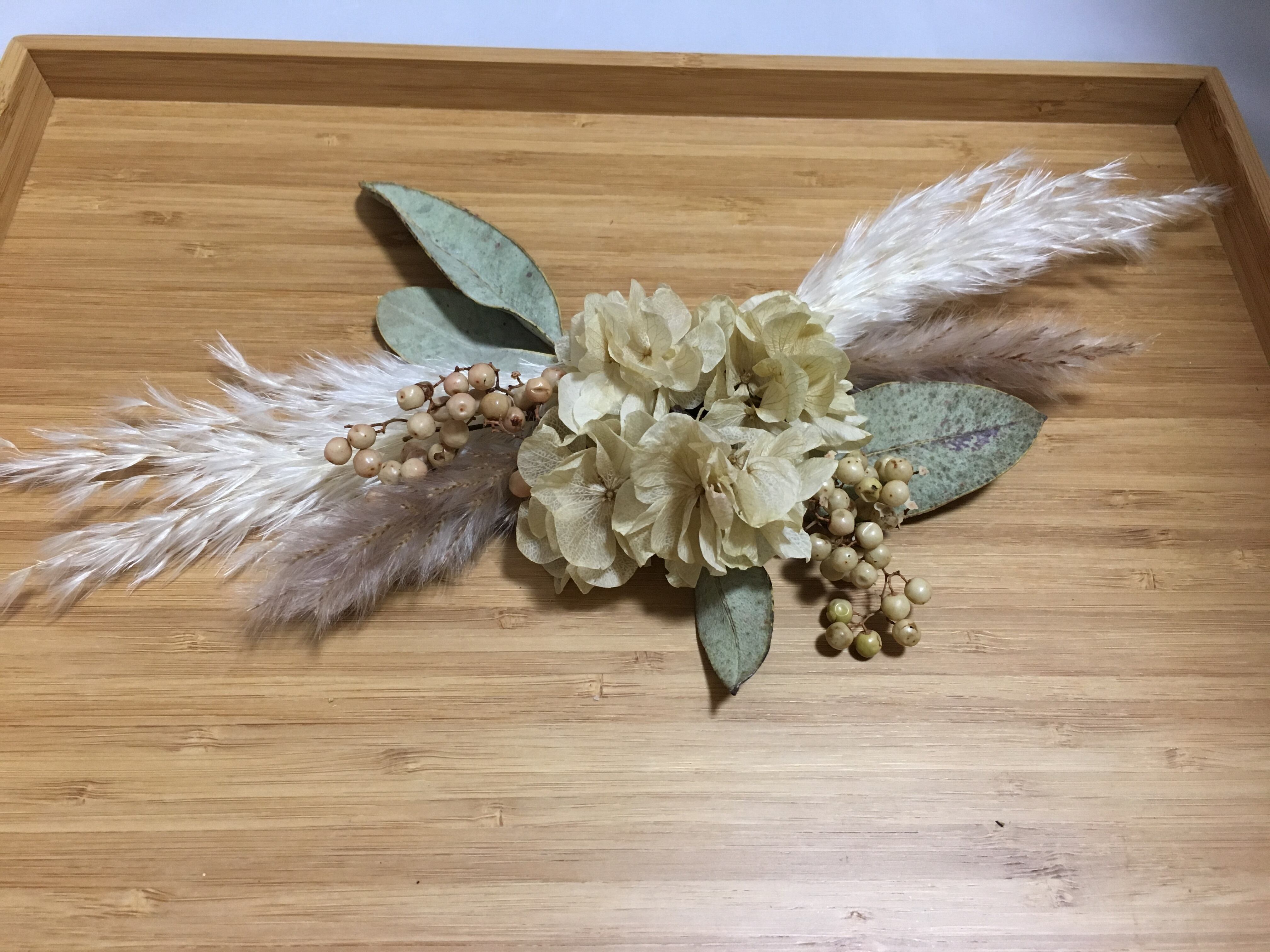 *清楚でシックな雰囲気を感じさせシーンを問わず万能にお使い頂ける髪飾りです 大人気のパンパスグラスを使用してます☺︎ ♡お花は一輪ずつ独立してUピン、又はワイヤーに取り付けてあります。 ♡自由にお好きな位置に付けられるので様々なヘアスタイルを楽しむことができます☆