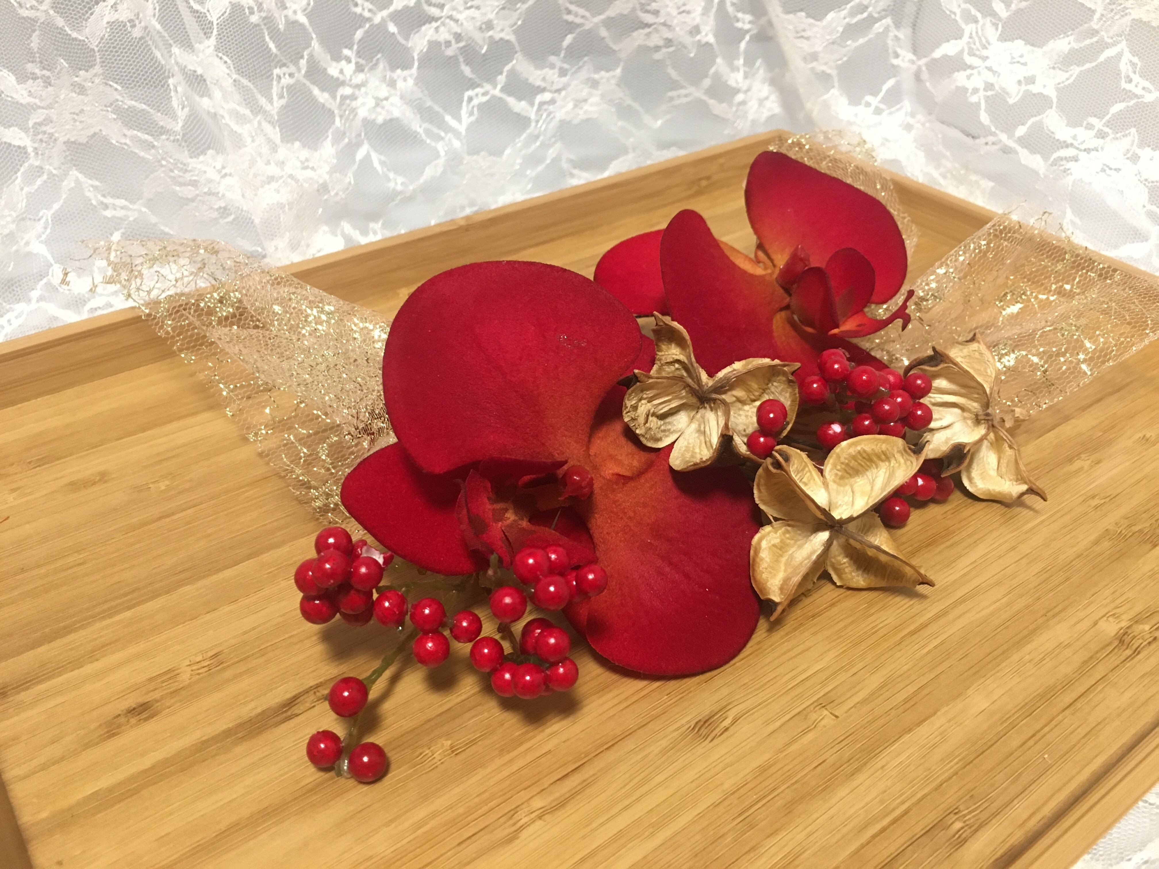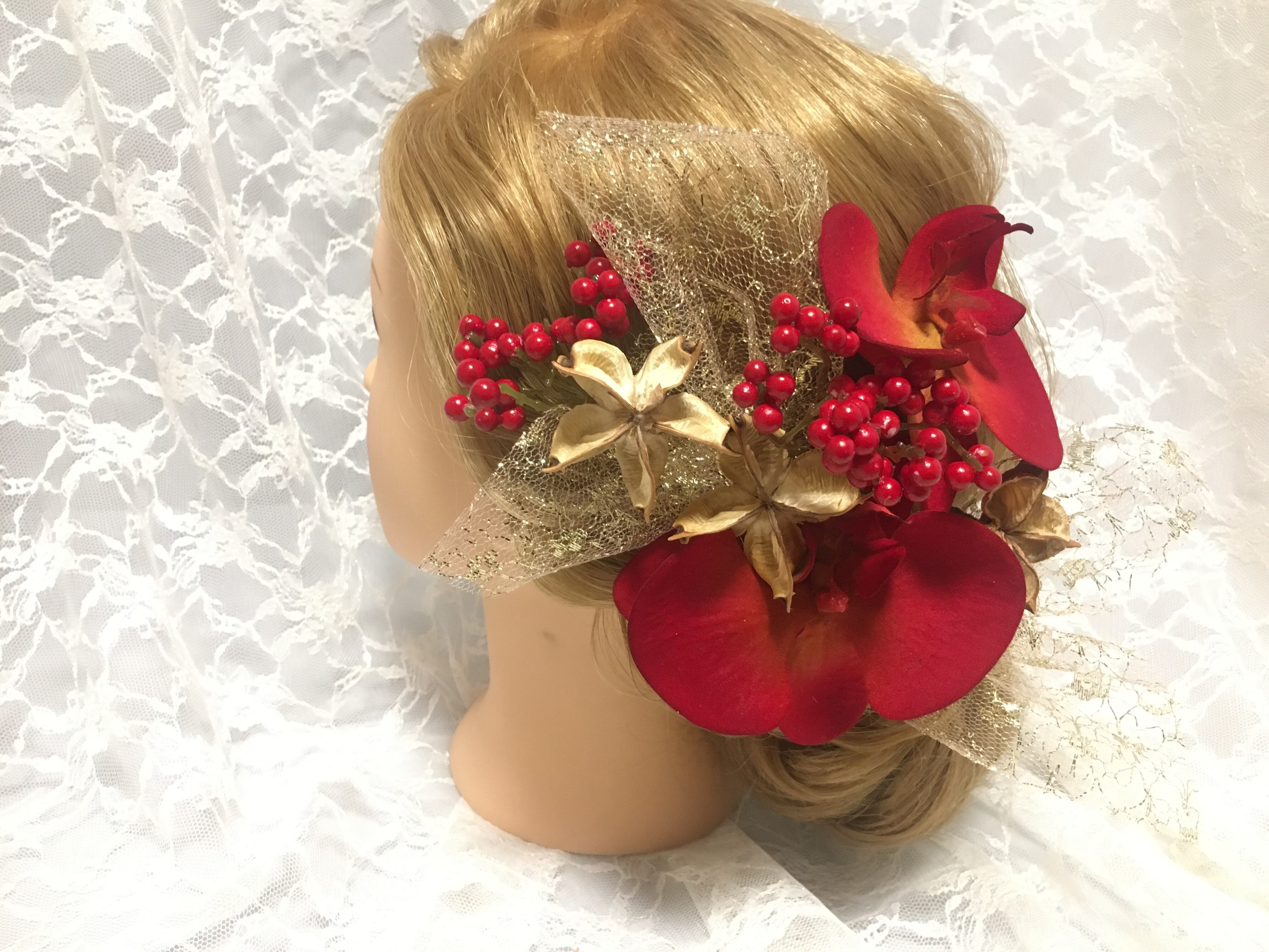 *成人振袖や和装をより一層華やかに美しく引き立てる赤色の髪飾りです ゴールドのチュールも入りラメ感もあるので 華やかな雰囲気がお好きな方におすすめです☺︎ ♡お花は一輪ずつ独立してUピン、又はワイヤーに取り付けてあります。 ♡自由にお好きな位置に付けられるので様々なヘアスタイルを楽しむことができます☆