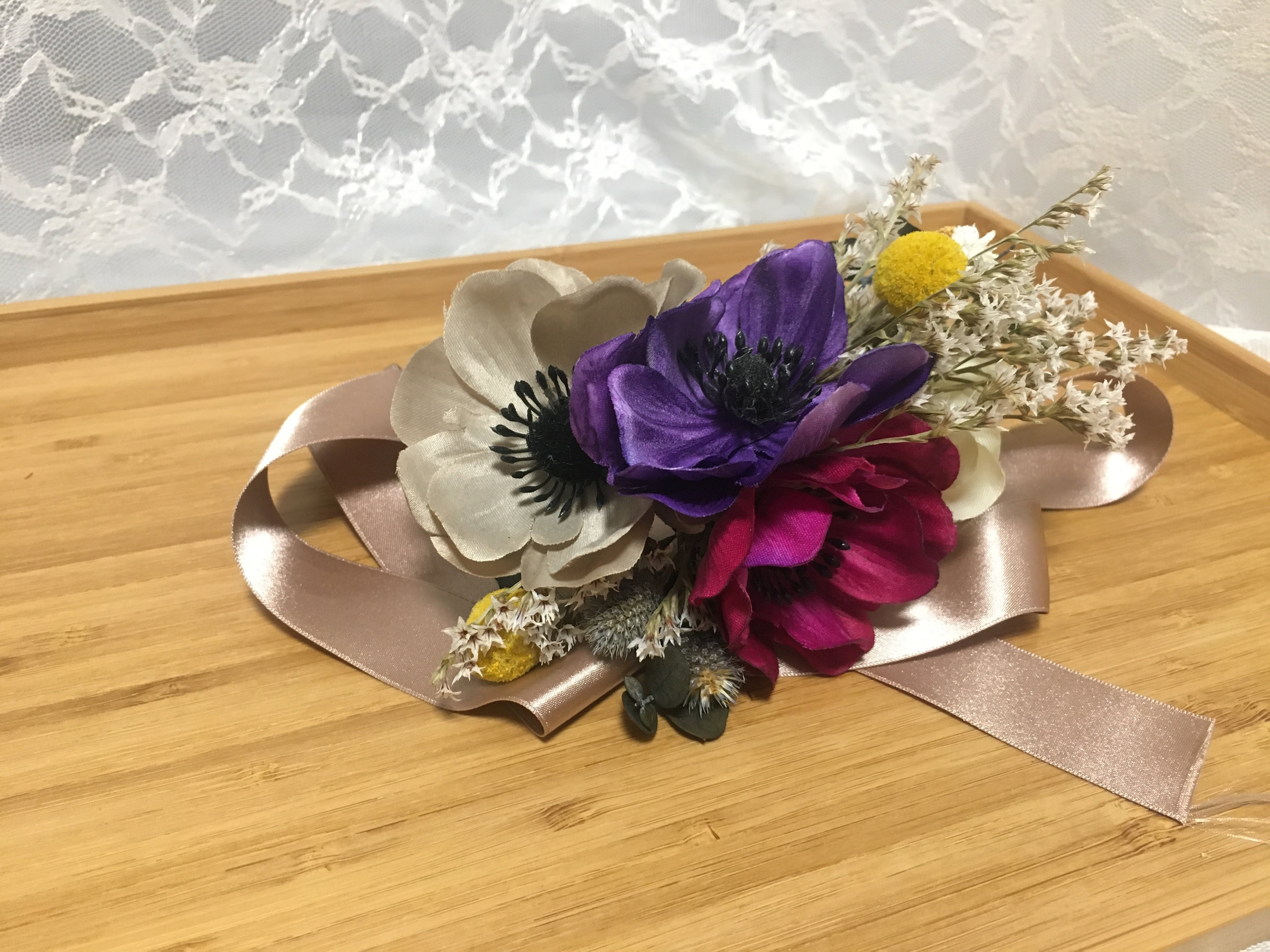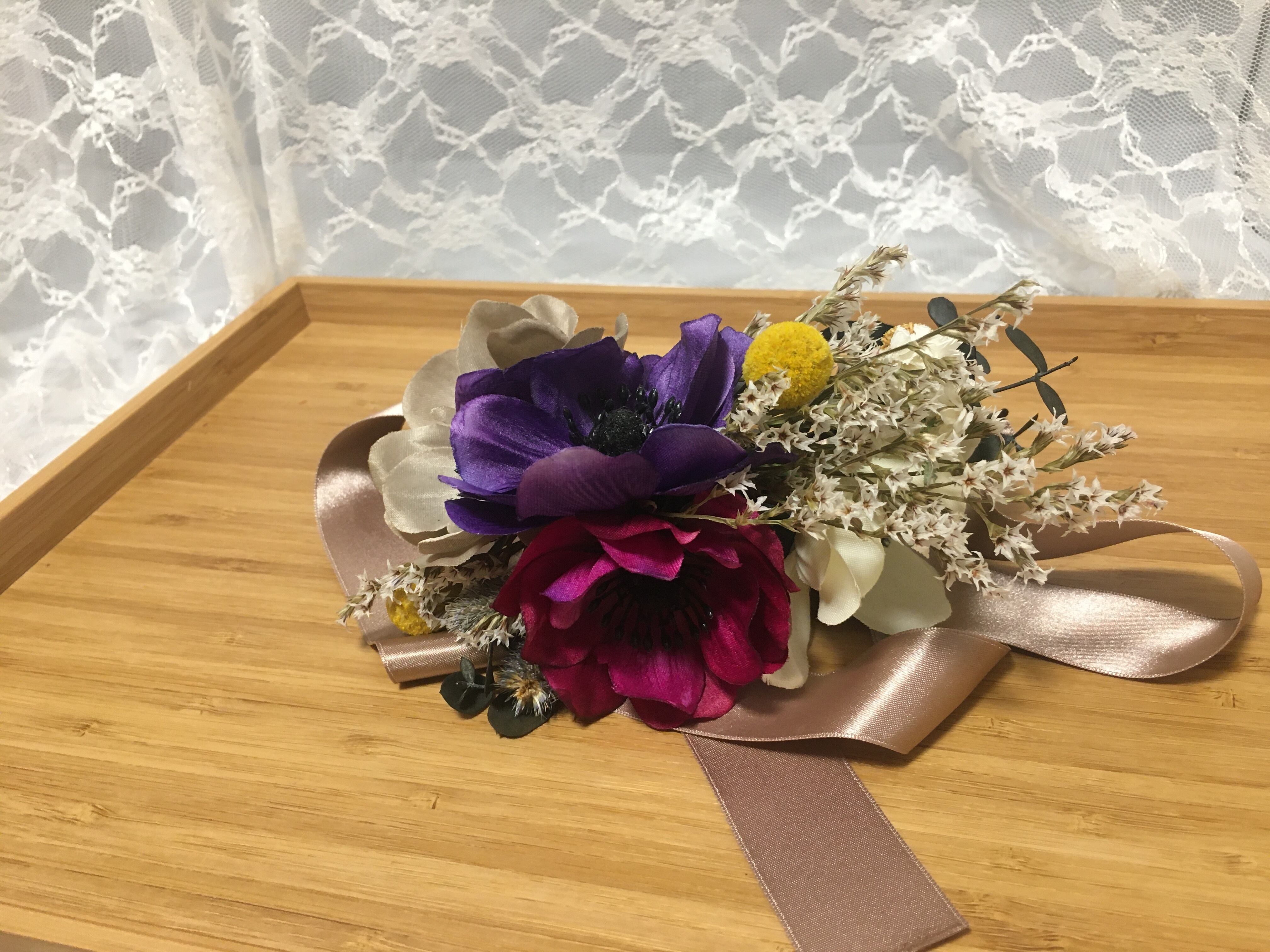 お揃いでブートニアや、髪飾りと合わせての